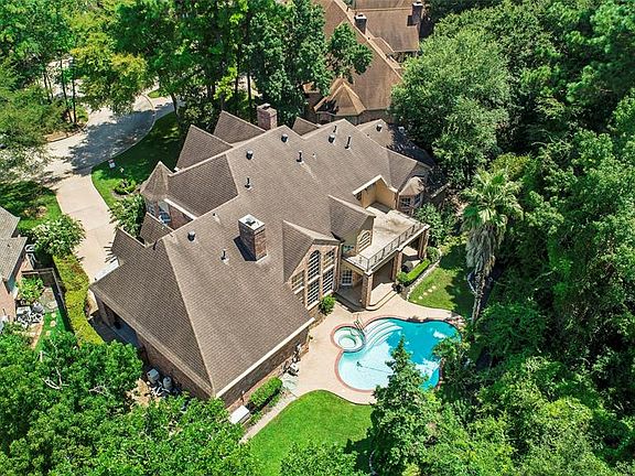 Beautiful Jeff Paul custom home on cul-de-sac in the exclusive Cove of Panther Creek. High ceilings, windows galore and elegant moldings throughout home. Balcony and a 2 car porte cochere. Formal living has large transoms, 14ft ceilings with crossed beams, an arched window, fireplace with custom mantle & rich wood floors. The family room has floor to ceiling fireplace, built-ins, wood floors and a wall of windows looking out to the pool/spa and private back yard. Covered porch has balcony above to enjoy back yard views. Gameroom up, island kitchen, formal powder and pool bath. Private generator for any power outages.
