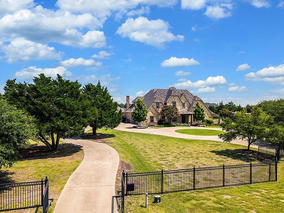 Only 10 miles from George Bush Freeway, this spectacular, amenity packed 5 bedroom estate style gated property on 1.3 acres with no HOA & priced under appraised value is complete with shop-detached garage (5 total garage spaces), sports court, pool, outdoor living areas with fireplace & summer kitchen, separate spa with pool bath, downstairs master & guest suite & features impeccable craftsmanship & attention to detail with hand scraped hardwood floors, layered crown molding, high baseboards,and soaring ceilings and located only moments from beautiful Lake Ray Hubbard, The Harbor, shopping, great schools, restaurants and entertainment. Extended circular drive welcomes your arrival. Grand entry with stunning staircase overlooks beautifully detailed dining area with iron chandelier and arched doorways. Downstairs guest suite includes private full bath. Home office is complete with raised wood paneled accent wall and wainscoting. Open floor plan features chef's dream kitchen opening onto breakfast and family room. Spectacular kitchen features upscale commercial style stainless steel appliances including Thermador double convection ovens and gas cooktop, dishwasher and microwave, an abundance of custom wood cabinetry, island with vegetable sink, granite countertops, tumbled marble backsplash, roomy pantry, butler's pantry with wine rack and custom cabinetry with granite counter tops. Breakfast area includes plantation shutters and lovely iron chandelier. Fabulous family room features floor to ceiling Austin stone fireplace, plantation shutters and soaring ceilings. First floor master suite includes stunning master suite with sitting area, plantation shutters and opens onto master bath. Master bath features expansive jetted tub, separate rain shower, his and her vanities with custom wood cabinetry and spacious walk in closet. Downstairs media room will be a hit with family and friends and is pre wired for surround system. Huge game room can easily accommodate a full size pool table. Bonus room can double for exercise or craft room. Three auxiliary bedrooms with full baths are complete with spacious closets. Unfinished room is perfect for storage area. Other amenities include outbuilding/shop with two overhead garage doors (one oversized), dog run, cul de sac lot, gated entry. This home is the one you have been waiting for! Don't miss it!