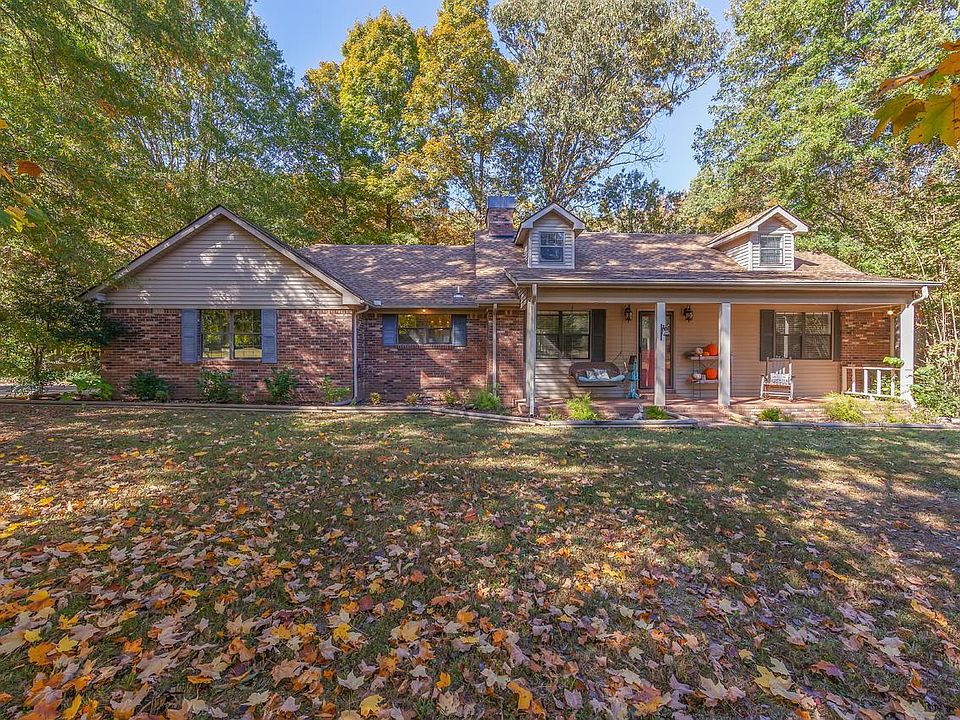 At the end of the long driveway, Home is nestled in the trees on 13.6 acres, privacy plus; South Gibson County School District; 4 bedroom/or 3 & an office, 3 baths. Large kitchen w/work island, stainless appliances, tons of storage, Stocked pond, 2 Barns & more. Tons of character w/sliding barn door, wainscoting, shiplap walls & hardwood floors throughout & New HVAC unit up. You will love enjoying evenings in the bright, welcoming sun room w/vaulted ceilings & views of the private backyard to watch wildlife