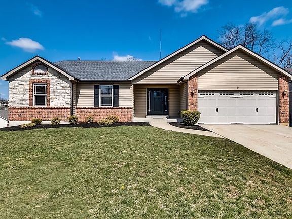 5 Millers Ct. Lawn care is included in price. Great location....minutes from Hwy 70, 64 and 364. 10 minutes from Wentzville, 5 minute to Lake St. Louis and 12 minutes to Chesterfield Valley. 1500 square foot, 3 bedroom, 2 bath ranch style house. Mohawk frieze carpeting in entire home. 2 car garage with opener Nice living room with fireplace, built in TV nook. Breakfast room that leads to 12 x 12 deck. Main floor laundry room as well as additional laundry hook ups in basement. Large master bedroom with walk in closet. On suite master bath with 72" double vanity and walk in shower. Additional storage closet within bathroom Good size secondary bedrooms. Bedroom 1 - 13' x 12' Bedroom 2 - 12' x 11'. Vaulted ceiling in living room as well as a vault in master bedroom. Grass is cut at no longer than two week intervals and weekly in the peak growing season. Shrubs are trimmed annually. Tenant responsible for utilities. lawn care is included in the lease price. 600 minimum credit score and background check required. Some pets allowed, will evaluate on case by case basis