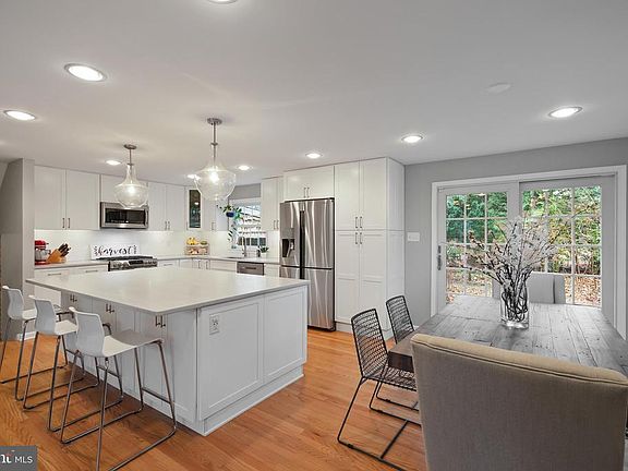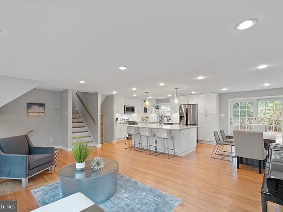 The interior of this beautiful Colonial style home was completely redone in 2016. The heart of the home is a fresh and modern open concept kitchen with enormous island, room for a dining table and sitting area, and all new Samsung appliances and Quartz counters. The large family/TV room is a few steps away and includes a built in cabinet for your television, a gas brick fireplace, and an adjoining sun room. Three bedrooms include walk-in closets, and the 4th bedroom has a very large closet. The guest bath was completely gutted and includes a soaking tub. All windows replaced, matching hardwood floors throughout, and fresh paint in neutral tones. Large basement with epoxy floor includes a laundry center and newer HVAC (2016). Entering from the garage, you'll find a mudroom, where your whole family can store shoes, coats, and backpacks. The large backyard offers privacy and plenty of room to play and explore. Located in the heart of Charleston Riding, the well-designed neighborhood has a community pool walking distance away. Wonderful neighbors, Cherry Hill school system, and the perfect location make this house a true home.