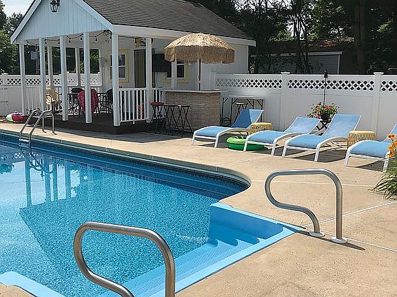 Perfect sized colonial single family home with remodeled flooring, painting, decking, and patio. Large yard with a beautiful in-ground pool and fenced in pool area along with a pool house. Large windows in the kitchen and lots of natural light throughout the house. Two living rooms, one including a gas fireplace. Two sided finished basement with hardwood flooring on one side and a rug on the other. Small laundry room/mud room. Coul-de-sac and neighborhood is great for riding bikes and taking walks.