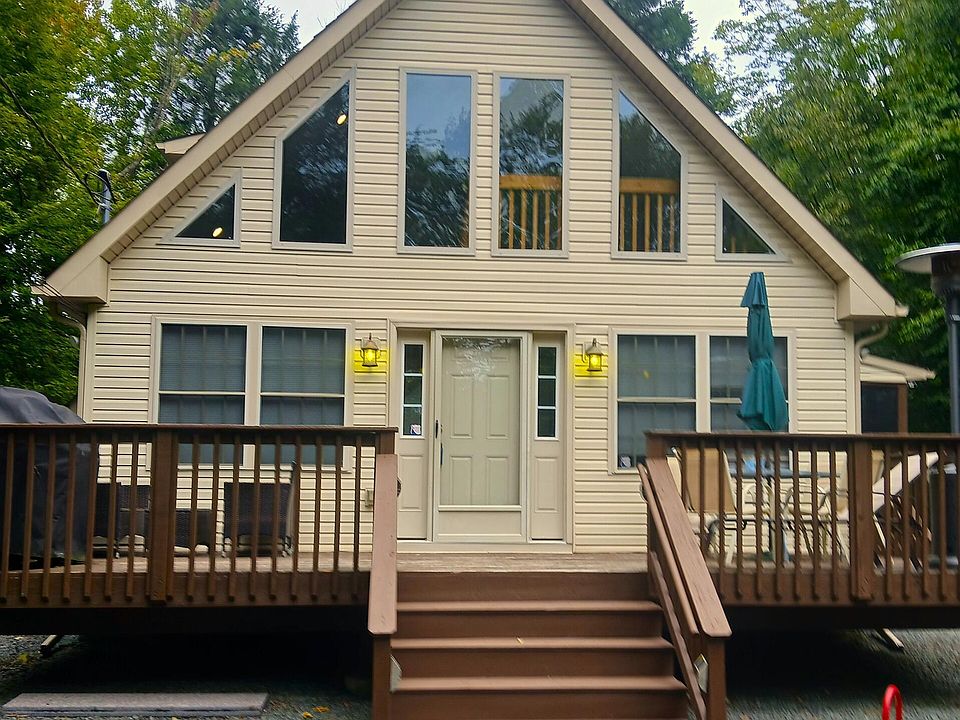 Feel right at home in this lovely 3-bedroom, 2-bath chalet, built in 2008. The primary bed and bath are conveniently located on the first floor leaving the upper level for family or guests. The open plan allows for easy entertaining and the screened porch and large deck allows the festivities to continue outdoors. Enjoy the peaceful ambiance of this secluded cul-de-sac location. The community amenities are extensive and include lakes, beaches, pools, a clubhouse with a restaurant and pub, a golf course, and a ski hill. You'll also have access to tennis courts, an indoor recreation complex with a fitness center, arcade, basketball courts, ball fields, a children's playground, walking trails, arts and crafts programs, and a vibrant recreation program with day camps for kids. Plus, there's a campground for even more outdoor fun!