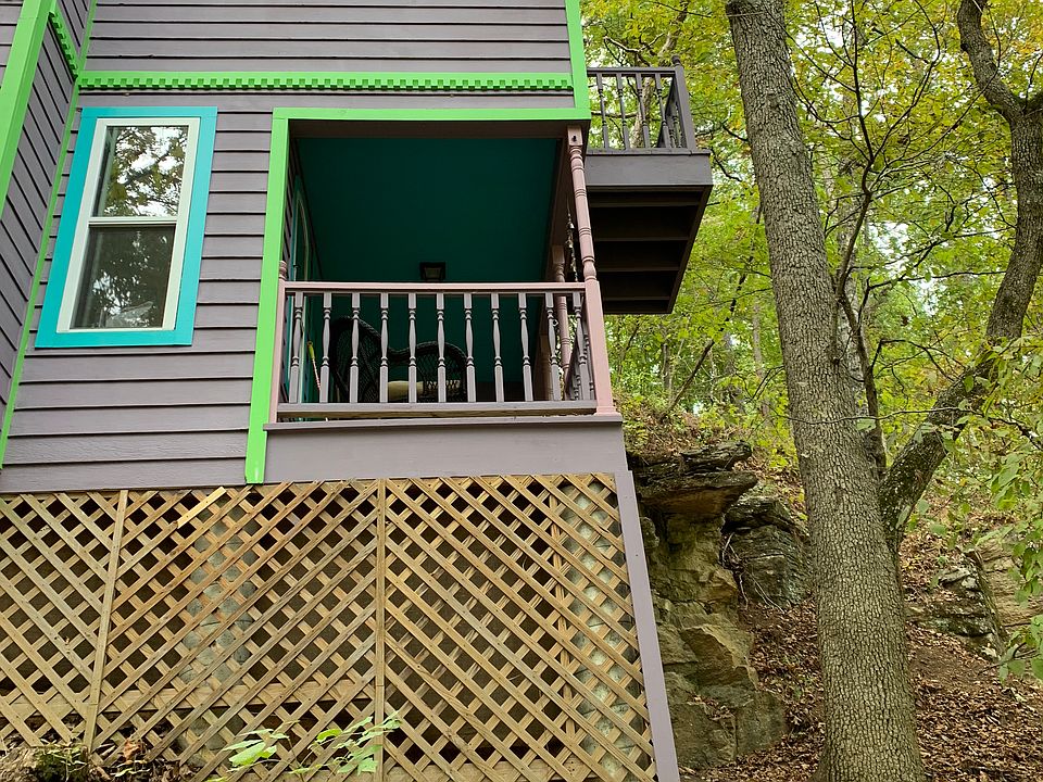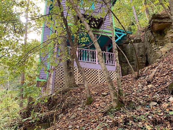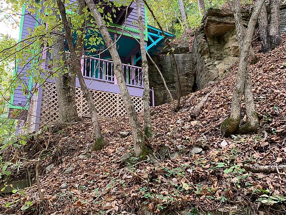 Darling Victorian replica 2 story home . Beautiful colors and amazing setting . Just at the end of Little Lake Eureka and the bluffs behind the house make it a gorgeous setting for privacy and relaxation right in the middle of Eureka Springs. Very stylish and roomy for a smaller concrete post and beam home . Big Deck for outdoor entertainment and 2 porches off the front of the house to enjoy the lake from. Easy walk to restaurants , music venues, and beautiful downtown shopping. This property comes with 2 extra lots .