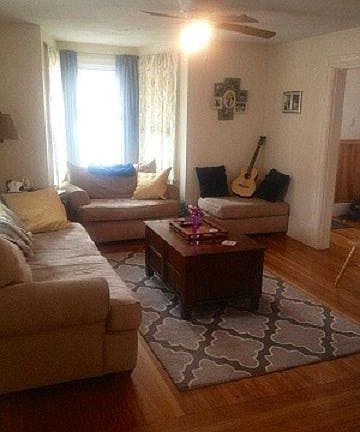 Available Feb 1st/15th Large six room duplex with living room, dining room, kitchen (updated appliances) , half bath, and laundry with washer and dryer on the first floor. Second floor has 2 bedrooms and a full bath. Office/bedroom/bonus room on 3rd floor. Newer gas heating system, central a/c, walk out basement, off street parking and landscaped yard. Walking distance to shops, restaurants , and public transportation. 3 min drive to Rte 128. Notice needed, unit is occupied. PET FRIENDLY First, sec deposit and half month fee Call today to schedule a showing. Tenant responsible for utilities.12 month Lease, First, Security & Half month fee.