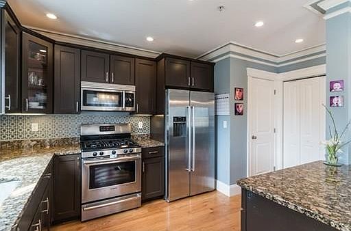 Move right into this expansive Private entranced end unit quad-level townhouse with a brilliant blend of Space, Style, Form and Function. Built in 2010. Accommodations include 2440 SQ. FT. 4 bedrooms, 3.5 baths, En-Suite master bedroom with cathedral ceiling and sitting area. Finished basement with full bath. Open floor plan Chef's eat-in kitchen with Bosh S/S appliances, Granite Island, pantry and under counter and pendant lighting. Entertain on the deck, patio or fenced in yard. Hardwood floors, Gas fireplace w/mantle, crown moldings, designer lighting and finishes, 2-zone A/C and HVAC, huge walk-in closets & laundry room. Walk-out basement, extra storage, parking and much more. Unit sits opposite the Brookside Community Gardens, Close to Green Street or Stonybrook T stops/Orange line, The Brewery Complex, Café Ula, Bella Luna. Just Move in!