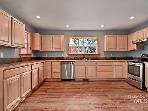 This property is the epitome of a home ready for some front porch "sittin'.'" Nestled atop the Idaho mountains, the magnificent panoramic views and beautiful scenery serve as a backdrop for a more quiet, peaceful & rural lifestyle. A fabulous covered front porch, with a wrap-around deck, immediately welcomes you upon arrival, complete with a dedicated spot(and wiring)for a hot tub/jacuzzi. Upon entering the home, you'll find a wood pellet stove with a custom floor-to-ceiling river rock surround & built-in shelving.The great room is ideal for entertaining or family gatherings, complete with a 2-story vaulted ceiling and double sets of french doors that encourage indoor/outdoor living. Recent updates include newer luxury vinyl flooring, stainless steel appliances, paint & refinished hardwood stairs. The Primary Suite features its own private balcony, vaulted ceilings, a soaker tub, double vanities & a massive walk-in closet. Put your skills to the test in your separate shop, complete with heat & electricity!