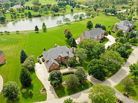 Exceptional home in desirable Cutters Run with fantastic water views. Rear southern exposure to lake. 2-Story family room. 1st Floor office and full bath. Kitchen with breakfast bar, island, c-thru fireplace. Master bedroom with fireplace, sitting room, private bath with 2 sinks, whirlpool tub. 2 Bedrooms with private full baths plus 2 Bedrooms share a Jack & Jill bath. Bonus room. Walkout basement with wet bar, full bath, large storage room. All brick, 4 Car garage, paver driveway. Deck. NEW roof 2015, NEW 3 HVAC 2016, NEW 2 hot water heaters 2018. Close to shopping, restaurants, I-90.