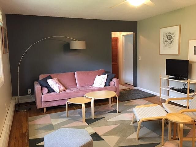 Spacious one bedroom, end-unit on second floor, walk to town of Lenox. Quiet Condo complex with mature landscaping and garage attached to unit. Furnishings are modern and simple. Rugs over hardwood floors and queen size bed. Rent includes: heat, hot water, trash and property maintenance. Washer/dryer, dish washer, gas stove, fridge all included. Tub with step-in shower unit. AC unit in bedroom generally sufficient for all rooms, and fans in each room. Renter pays electric bill - usually $30-40. References will be required. Please apply via email address.