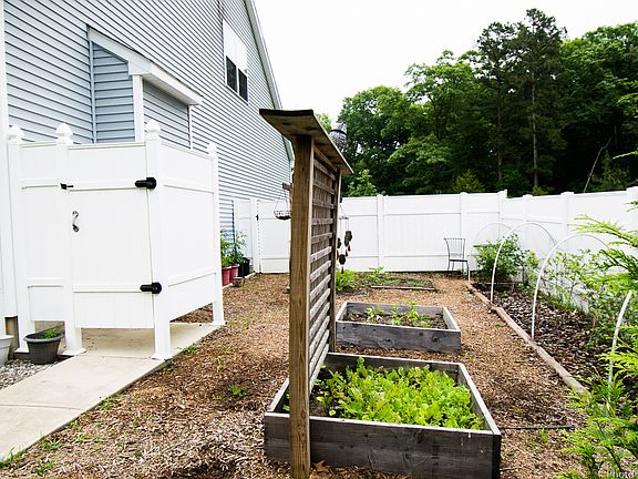 From the pretty front porch all the way to the vinyl fenced yard complete with secret garden prepare to be impressed! Meticulous sellers have maintained this spacious home..Certified energy star home features energy efficient HVAC, upgraded insulation,better ventilation. Open eat in kitchen to roomy family room with gas fireplace. French doors to office/library, formal living room and dining room.Plenty of natural light, 9 ft ceilings, Chefs kitchen with 44 in cabinets, full pantry and so much counter space. Crown molding upstairs in the large bedrooms with ample closets. Master suite features huge WIC and bath with dual sinks and garden tub. Large basement with high ceilings has so much potential for conversion to media room, home gym or any additional living space. Playset , big patio with paver edging, raised bed garden in a quiet "Zen space" in the yard Your own apple trees, blueberry bushes and perennial asparagus/strawberry garden too! Sprinklers front and back., outdoor shower for after the beach. Storage, Security system, efficient economical utilities, cul de sac location, neutral colors, dual staircase design all combine to make This Tim Schaeffer built home perfect for the discerning buyer..