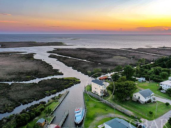 Enjoy post-card perfect views of the Croatan Sound from this rare Wanchese find! Built in 2013, this home features granite countertops, stainless appliances, a gas log fireplace, dry entry from garage, private bath in all rooms and tons of storage. Master en-suite with built in wet bar, walk-in closet, whirlpool tub, double sinks, separate water closet and waterfront deck. Private basin with direct access to Oyster Creek and water views from nearly every room make this home an absolute fisherman's paradise.