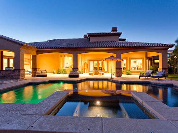 Highly upgraded custom home in guard gated Anthem Country Club. Over ½ acre on corner lot in cul-de-sac. Backyard paradise with pebble tech pool & spa, built-in BBQ with fridge, lush landscaping & oversized covered patio. 5 bedrooms + large loft/gameroom. 7 baths. 4 car garage & circular driveway with portico entrance. Gourmet kitchen with granite counters, stainless steel appliances, 2 dishwashers, double ovens with convection, island with prep sink, butler’s pantry with 2 wine refrigerators. Oversized master with sitting room, his & hers walk-in closets with built-ins, walk-in shower with multiple shower heads, bidet, French doors in master open to patio. Upstairs loft/game room has wet bar with fridge, custom media niche, fireplace, large balcony with strip views! Intercom system throughout home, speakers throughout inside of home and outside of home, crown molding, upgraded baseboards, marble floors, double iron front doors with glass, family room with custom media niche & fireplace, wrought iron staircase, large laundry room with sink, lots of cabinets and counter space, arched hallway, rock veneer throughout home and much more! Call Mike Carlucci at 702-461-4422 or go to www.MikeCarlucci.com for more information. Neighborhood Description Country Club Living - Guard Gated, Exercise Room, Tennis Courts, Rec Room, Spa, Golf Course, Security