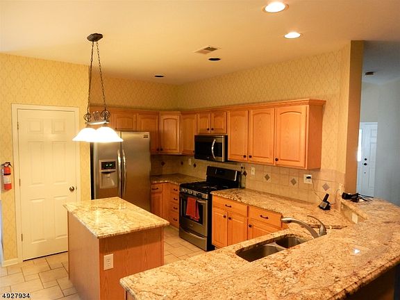 FANTASTIC 4 BEDROOM HOME WITH OPEN FLOOR PLAN. LARGE ROOMS, FENCED YARD WITH PRIVATE OUTDOOR PATIO AND IN-GROUND POOL.Fall in love w/this home featuring an open floor-plan. The Gourmet, eat-in kitchen includes: granite c-tops, & S/S appliances. 1st flr has a formal dining rm, family rm, great rm, laundry rm, & powder rm. Upstairs boasts 4 large bedrms - Mast bath w/double vanity, soaking tub & shower, walk-in closet w/built-ins. There is a sitting rm /office, & 2nd full bath. The fenced backyard includes a patio area, & in-ground pool. Situated only minutes from shopping, mass-transit, Centenary University, & Hackettstown Medical Center. **Landlord will open pool for the season, tenant has to maintain & close pool**.