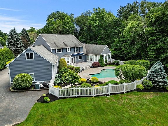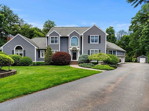 Location! Location! Location! Welcome to 5 Mustang Circle! This home is situated on 4.1 acres of professionally manicured grounds and mature plantings creating your private oasis that can be enjoyed all year long. This amazing home features 3,885 sq ft of living space with an open concept granite kitchen, center island, double oven, gas cook top, tons of cabinets,15x14 breakfast nook that opens to the beautiful back yard, 42 x13 back deck and heated inground pool.Convenient 4th bedroom + full bath are also located on the 1st floor which is great for guests. Spectacular family room w/ 3 walls of windows + vaulted ceiling was added 14 years ago and is perfect for family gatherings or enjoy the 23x21 living room w/ gas fireplace, cathedral ceilings, + hardwood flooring. 2nd floor features 3 bedrooms 2 baths including a primary suite w/ double vanity, soaking tub + 13x8 walk in closet. Heated 2 car garage, irrigation using well water, central air, possible second lot.