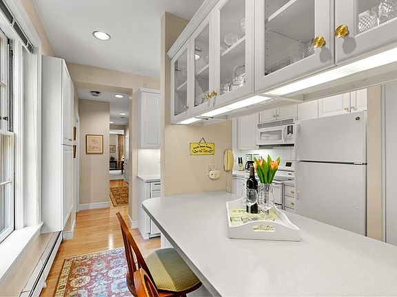 Offering warmth and charm the moment you enter, Unit 3 at 5 Myrtle Street is the epitome of a welcoming home. An oversized living/dining room w/ lovely brick fireplace sets the tone of this inviting unit w/ 3 front facing windows overlooking the green trees of Myrtle Street. Built-in cabinets and hardwood flooring add to the appeal. A tastefully renovated kitchen w/ counter seating is ideal for casual meals or as a breakfast bar. Abundant kitchen storage and an excellent layout make this a fantastic space for enjoying meal prep and entertaining. 2 bedrooms are perfectly positioned near the rear of the unit allowing for a bit of privacy: the first w/ a fireplace also makes an ideal den or guest bedroom, the second is also generously proportioned and further from the living spaces. A renovated bathroom w/ marble accents and subway tile is ideally located. This condo features in-unit laundry, a 100% owner occupied assoc., is pet-friendly, and is close to all Beacon Hill has to offer!