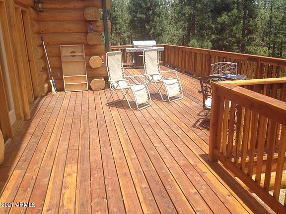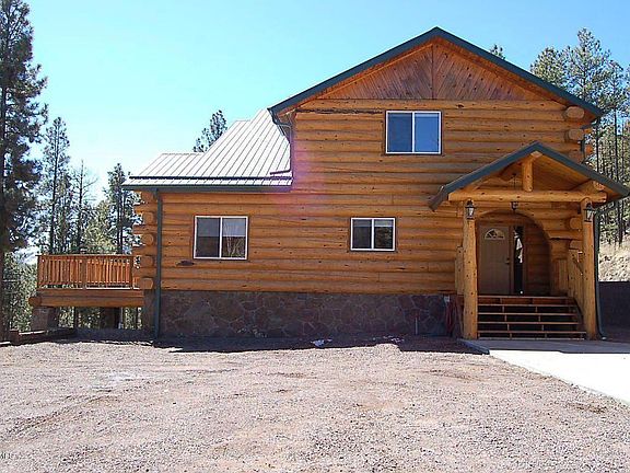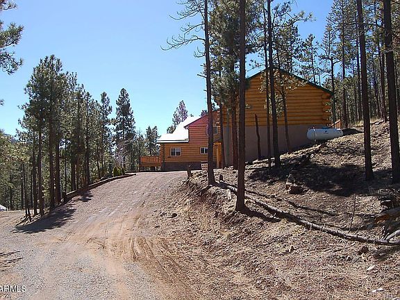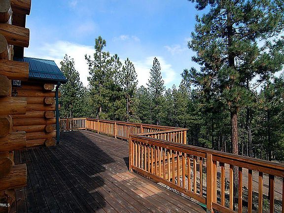 Beautiful property in the White Mountains! Engelmann spruce hand-hewn log cabin nestled on 2 acres of towering pines. Very open & bright with soaring ceilings & oversized windows that frame the forest & mountain views. The 3,600 SF main residence includes 5 BRs & 4.5 baths spread over 3 levels. Huge kitchen & great entertaining spaces for friends & extended family. Massive 45-foot deck extends the living space to the outdoors. The 940 SF guesthouse above 3 car garage has full kitchen, bath, bedroom and living area. Travertine and laminate floors throughout both homes. Ecobee thermostats remotely control. Short distance to the village, but far enough away to ensure year-round peace and quiet. 8500-foot elevation with summer temps avg 70s and 80s.