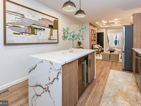Welcome home to beautifully and skillfully renovated 3-bed, 3.5-bath masterpiece! Experience city living at its finest in this stunning, remodeled townhome just steps from iconic Patterson Park. Surrounded by neighborhood favorites—trendy coffee shops, local restaurants, and lively community vibes—you’ll be in the heart of one of Baltimore’s most desirable and walkable locations. This home has been rebuilt from top to bottom with modern finishes and thoughtful conveniences. Step inside to an open floor plan, featuring an inviting accent walls, custom iron railings, tray ceilings, custom lighting, and a sleek heat-emitting electric fireplace. Every detail crafted with style and sophistication. The chef’s kitchen with custom cabinetry, premium appliances, and a built-in wine chiller—perfect for entertaining or a quiet night-in. Just outside, find a private patio offering a cozy retreat for dining al fresco or just relaxing outdoors. Upstairs, each bedroom is designed as a suite, with its own bathroom, combining comfort and privacy. The luxurious primary bedroom boasts a spa-inspired en-suite bath, and dual closets. Convenience shines with a high-end stackable washer and dryer on the upper level. Plus, the water heater and washer are equipped with advanced flood protection which directs water to the sump pump in the basement—protecting your investment. The fully finished walk-out basement provides additional living space, versatile, and complete with a Jack-and-Jill bathroom—ideal for guests, a home gym, or a cozy media room. This home is not only beautiful, but also built for peace of mind: all work is fully permitted and city-code compliant, featuring brand-new plumbing, a new sewage line, updated 200-amp electrical service for today’s appliances/devices, new BGE meter, new windows, and a new roof. With its unbeatable location, ample street parking, high-end finishes, and top-quality upgrades, this Patterson Park treasure is truly move-in ready and built to impress. Come see this beauty for yourself and don’t miss the chance to call it yours! **The Seller is generously offering to COVER BUYER CLOSING COSTS - making this property even more attractive and affordable. **