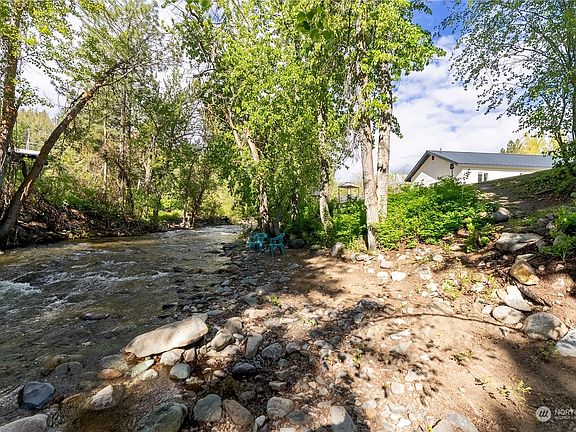 160ft of no bank Gold Creek front! Hear that water rumbling year round, white noise nirvana. This 816sf cabin is your foothold into the Methow Valley. Bright spacious energy with 2 bedrooms, full bath, roomy kitchen, and laundry. Wear and water resistant vinyl plank flooring, on demand water heater, 2x6 framing to over insulate you. Stay warm in winter and cool in summer. Protect your gear in a 12x16 shed with loft & 2 overhangs for even more covered storage. Irrigation water for your .55 acres is made easy with underground sprinkler heads keeping your lawn green and home firesafe. Put your feet in Gold Creek while lounging on your private beach. Easy year round flat access.
