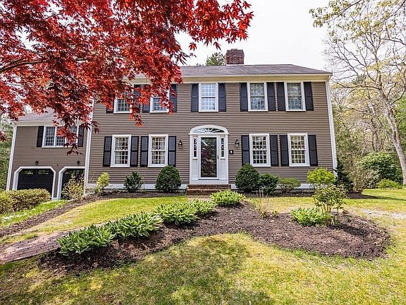 This grand colonial in desirable West Barnstable sits up high on a sprawling corner lot offering lots of charm and square footage. This custom layout has plenty of room for entertaining, including a formal living room with see-through fireplace that peaks into the spacious kitchen with center island for cooking, and a cozy, built-in window seat overlooking the back yard. Natural light and gleaming wood floors. The formal dining room is perfect for special occasions, while the family room is ideal for everyday living and overlooks the private backyard. Upstairs you will find 3 Beds / 2 additional full baths, plus convenient 2nd floor laundry. The primary suite features a jacuzzi bath tub in spacious bathroom and a walk in closet. The large basement and walk up attic offer plenty of storage and expansion potential. The 2 car garage and expansive driveway provide ample parking. Passing Title V! Move right in and start making new memories or bring your own updates to this gorgeous home!