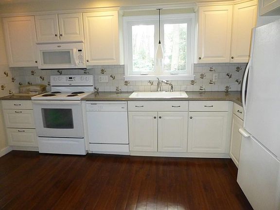 Brick front garrison colonial in a neighborhood conveniently located near schools, train, shopping, highways! What more could you want? Spacious rooms throughout including a three season sun room which leads to a private wooded back yard . A recent renovation includes all new bathrooms, brushed nickel fixtures and lighting, hardwood floors and fresh paint both inside and outside the home. In addition, the home includes a new roof with a 50 year warranty .Previous improvements include furnace, a 40 gal hot water tank, newer thermopane windows & kitchen installed in 2006. Seller will be connecting to town sewer by closing. Nothing to do but move in and enjoy.