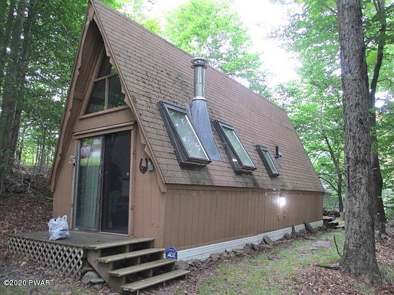 This rustic, two bedroom, A-Frame cabin in Pocono Ranchettes sits on an 0.40 acre lot. Low community HOA fees and low taxes make this a fantastic potential starter home, retirement home or an affordable vacation home close to all Pocono attractions including casinos, shopping, major interstates, skiing, hunting, and fishing. Come see all the Poconos has to offer!
