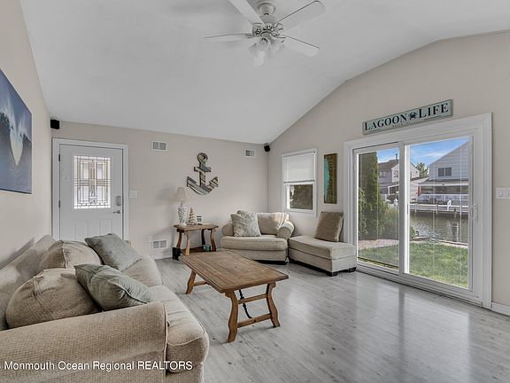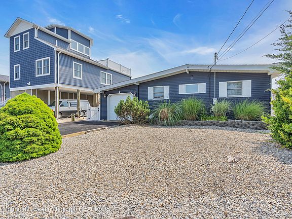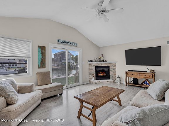 Waterfront 3 bedroom 2 full bath ranch style home with 1 car garage. The home has an open floor plan with oversized family room with vaulted ceilings and gas fire place. Renovated eat-in kitchen with shaker style cabinets, stainless steel appliances, tiled flooring and back splash, and granite tops. 3 spacious bedrooms including master suite with full tiled bathroom. Exterior features maintenance free stone and small grass area in fenced yard. Great opportunity for boaters to get onto the water and enjoy summer! HVAC, HW Heater, Roof were all recently replaced. Minutes to bay. Letter of Substantial Damage on file. As per Brick Township, Home Needs to be elevated. Town will not grant any permits for ANY renovations until house is lifted. Letters on File.