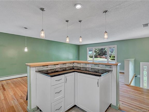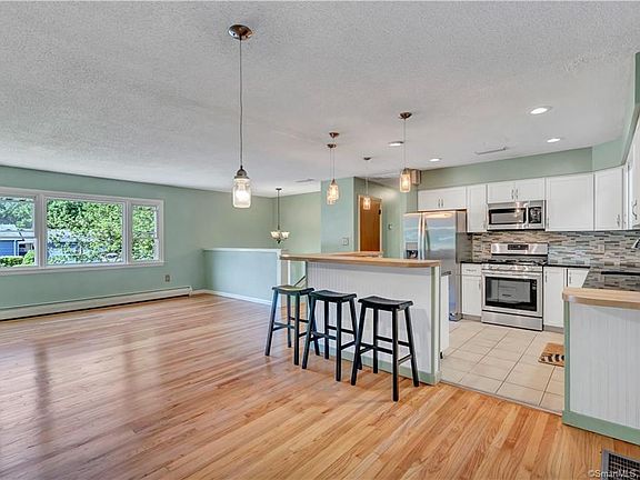 A nicely maintained home located on a quiet street within walking distance to Moriarty Elementary magnet school in Norwich. Settled on a nice private piece of property with mature trees, professionally treated lawn and back deck with a hot tub! A two car attached garage has ample space for vehicles and storage with additional sub panel for power if wanted. The 4 bedroom 2 bath split level home has CENTRAL AIR, an on demand gas furnace, and refinished hardwood floors throughout main level. The home had some major renovations in 2016 including the kitchen with new gas range, fridge, granite countertops and a L shaped island with butcher block breakfast bar. The large bedroom downstairs is worthy of being called the Master, with dual walk in closets, cast iron claw foot soaking tub and dual sinks/vanity. To top it off there is an external generator hook-up, new water pump, new roof and gutters, new front door, new rear slider, new picture window in living room and recessed lighting. This house is move in ready!