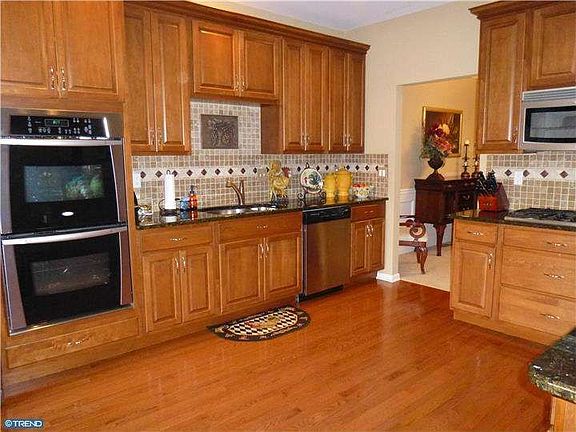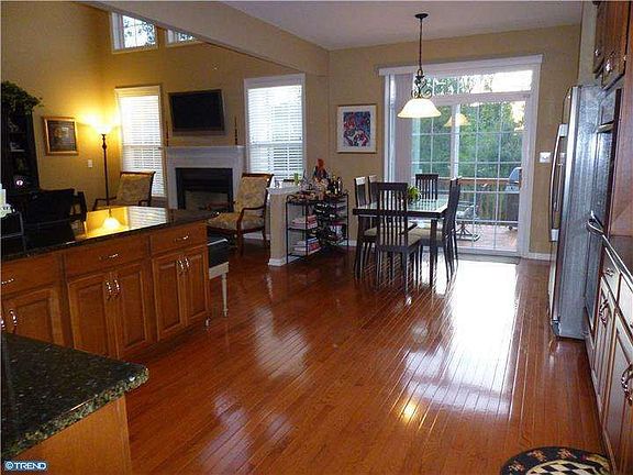 Immaculate light and airy 6 year young, Monroe Model (largest in community) Townhome featuring Covered Front Porch, Living Rm w/wainscoating, Dining Rm w/wainscoating, Powder Rm. Lots of bright, natural light from WALL OF WINDOWS in dramatic Two Story Family Rm w/ Gas Fireplace. Large, Eat-in Gourmet Kitchen w/Granite Counters, Stainless Steel Appliances and Custom Tile Backsplash. Sliding doors open to a quiet, peaceful 12 X 16 Cedar Deck overlooking wooded open space. Hardwood floors in Foyer, Kitchen, Family Rm and Powder Room. Master Suite with Tray Ceiling, Full Bath and His /Her Walk-in Closets. Two Additional Bedrooms with Full Hall Bath, and Second Floor Laundry Room. Large , Full WALK OUT Basement with Triple Windows and Sliding Glass Door to exterior open space. Attached Two Car Garage. Professionally painted, neutral colors throughout entire home. Must See. Very well maintained home.