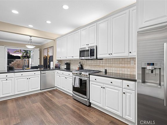 Welcome to 5 Niblick Lane, one of Coto de Caza’s most well appointed townhomes. Serenity, luxury, and comfort combine in this 3 bedroom plus loft home overlooking the picturesque Saddleback valley. As soon as you enter you will notice two story vaulted ceilings with natural light pouring into the open concept floor plan. The exquisite fully remodeled kitchen features granite countertops, Samsung stainless steel appliances, custom cabinetry with ample storage and stunning views. The family room highlights remodeled floors, upgraded baseboards and custom stacked stone HeatGlo fireplace. Open the Milgard French doors to the gorgeous backyard with BBQ island with bar seating, tranquil fountain, custom stone fire pit and unobstructed ridge line and sunset views- truly an amazing sight to see! Completing the main level is a remodeled powder bathroom, laundry room and 2-car garage with storage racks & epoxy flooring. Escape to your expansive master suite with spa-like bath that showcases fully remodeled shaker cabinet vanity with limestone countertops, extra large double shower with two faucet heads, oversized walk-in closet with built-in cabinetry and endless vistas from your private deck. Two secondary bedrooms with closet built-ins, a spacious loft that could be converted into a 4th bedroom and fully remodeled bathroom complete the upper level. Additional upgrades include whole house fan, ceiling fans, plantation shutters, new hardware, Malibu lighting and Milgard windows. Experience all that Coto de Caza has to offer including its award-winning schools, Golf & Racquet Club, sports park, hiking, biking & direct access to horse trails from the property and equestrian center! Don’t miss this amazing opportunity and schedule a private showing today!