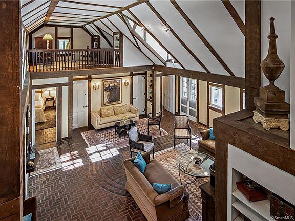 Stonebrook ~ Gracious, country estate in the heart of lower Weston. This idyllic, enchanting retreat transports you to the pastoral English countryside w/its Fieldstone Manor house, sweeping lawns, gardens & many outbuildings. The main house incorporates antique beams, original brick & pine flooring, detailed woodwork & 5 fireplaces into a casually elegant residence. The gourmet kitchen designed by Smallbone of London offers an escape for the family chef to create meals for casual dining or lavish entertaining. The dining room can easily accommodate 16+ for a formal dinner. The family room is reminiscent of an English Pub w/full antique/pewter bar & cozy stone fireplace. The living room w/vaulted ceiling is perfect for cocktails or a quiet spot to curl up next to a roaring fire. Work from home in the loft. The master suite is the ultimate luxury w/his/hers baths & walk-in closets plus elegant sitting room w/fplce. Open the Pub French doors to the fieldstone patios & terraces to enjoy life al fresco....host friends by the 36' x 66' pool w/its swim tunnel leading into the house. The lifestyle at Stonebrook offers options for peaceful privacy or entertaining on any scale. The 3 BR, 2BA guest cottage & 1 BR studio can host in-laws, guests or be rented out. A horse barn w/2 stalls, storage barn w/full workshop, greenhouse & raised bed gardens add to the charm & splendor of this magnificent property. Don't let this opportunity slip away....a rare chance to own an iconic landmark.
