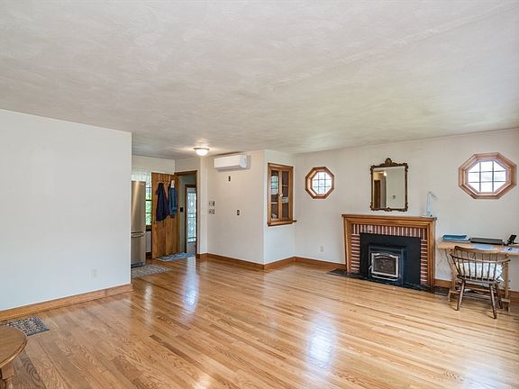 Make this charming brick ranch your own! Enjoy the warmth of gleaming wood floors in the living room, complete with a picture window perfect for watching the world go by, built-in storage, a ductless mini-split, and a Harman pellet stove. Galley kitchen features a mix of stainless and black appliances and opens to a dining area with access to both the partially finished basement and the backyard. Both bedrooms offer wood floors and ductless mini-splits, and the full bath includes a walk-in tub with shower. Find a welcoming family room with a wood stove insert and bar area downstairs. Relax in the three-season sunroom overlooking an expansive fenced-in yard with shed, firepit, and garden area of rhubarb and raspberry bushes, or hang out on the covered patio. Conveniently located near parks, schools, shopping, dining, and highway access. Being sold as-is. See why this lovely little home is full of big possibilities! Highest and best offers due June 17 by noon Eastern.