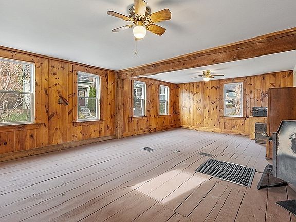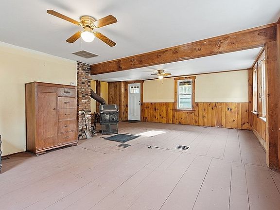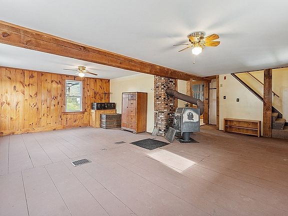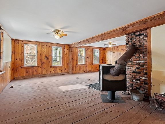 Ready for you to move right in! The 1st-floor features a very flexible floorplan including multiple living room and dining room layouts/locations. The kitchen features beautiful pine cabinets and a large center island. Up a half story from the kitchen is one of the potential dining room locations as well as a massive room with gorgeous exposed beams and soaring cathedral ceilings. Upstairs you'll find the 3 bedrooms as well as the full bathroom. One of the bedrooms features a balcony with views of the backyard. Outside you'll find a huge deck, side porch and a level backyard that overlook the stream. The garage provides great dry storage or a place to park. Wood stoves located on the 1st-floor and in the basement provide great supplemental heat. Newer siding and roof. Come see this home today!!!