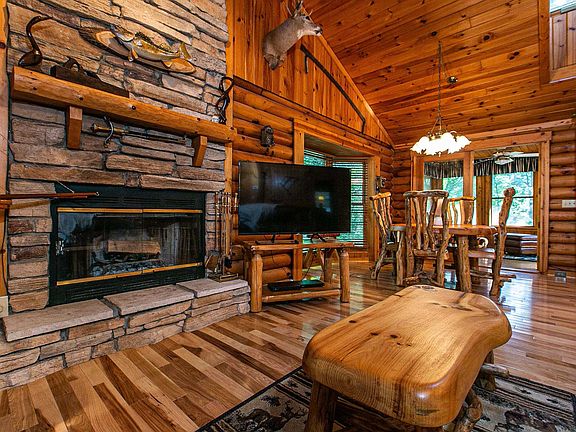 Escape from the hectic world to this log home oasis in the Galena Territory. Situated on a private, wooded lot with updated landscaping, concrete driveway, and a detached 2-car garage, this home is a treat to visit year-round! Walk into the open and bright main floor with updated hardwood floors and a wood-burning stone fireplace open to the updated kitchen with skylights and granite countertops. Past the dining room is a three seasons room that connects to an upper deck with stairs to a lower deck. Rounding out the main floor is a bedroom with a walk in closet and updated full bath. Main-floor bedroom also has a private jacuzzi tub that the current owners covered to utilize as an extra bed, but can easily accommodate the new Seller's preference. The walkout lower level offers updated heated tile floors, a family room, two more bedrooms, a full bathroom, and access to a second screened in porch with a hot tub that connects to the lower deck. Updates include roof (2018), Deck stained (2018), Updated Landscaping (2021), Updated kitchen (2017), interior paint (2020), flooring (2019) Log furniture available for purchase for an additional $20,000.