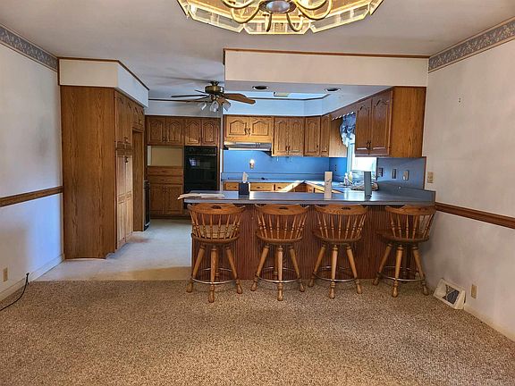 Great Location! North of town. Beautiful brick ranch home featuring 3 bedrooms, 2.5 baths, full basement, & a 2 car attached garage. The kitchen offers custom oak cabinetry, a built-in double oven, a cooktop, and plenty of counter space w/ 4 oak bar stools. Full basement offers a gas fireplace & an additional electric stove w/ bar & cabinet storage.