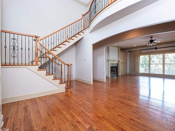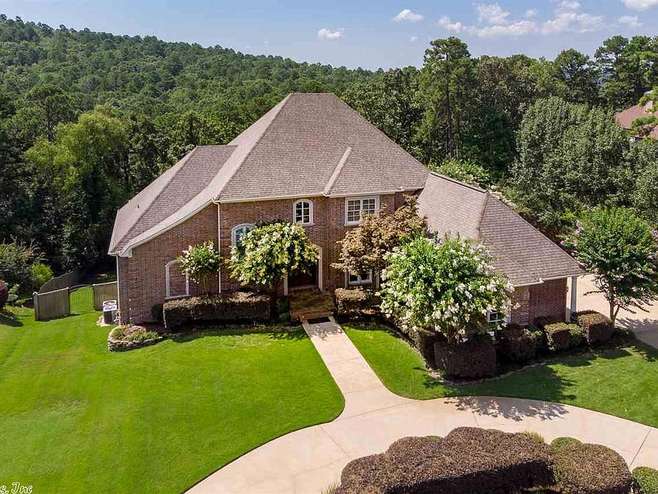 Beautiful home on quiet cul-de-sac with circular drive and a very private large .64 acre lot. Rich hardwoods in entry, dining, great room, kitchen and hearth. Gourmet kitchen has cozy hearth with stacked stone detail, granite, subzero, island, and 5 burner cooktop. Slate fireplace in master, upstairs bonus, den and private baths. Flagstone covered patio and deck. Workshop with garage door under house for man cave or storage. New roof 2012, new paint.