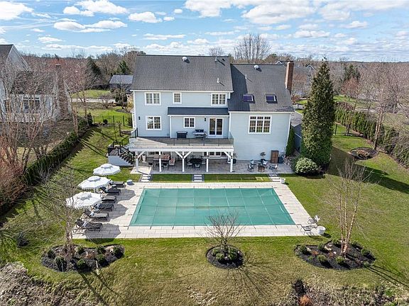 House Beautiful! Situated perfectly on just over a half acre, 5 NW Passage is truly an exceptional home, offering even the most discerning buyers an unparalleled blend of luxury, sophistication and elegance for modern living. Upon entry into this gorgeous home, you are welcomed into the beautiful front foyer complete w/ stunning chandelier. Head into the chef's kitchen w/ marble counters, center island & new appliances. The kitchen seamlessly flows into the large family room w/ cathedral ceilings and a gas fireplace. Directly off the kitchen you step out onto the expansive new deck and take in the gorgeous views of the property. The spacious DR features dentil moldings & flows directly into a sun filled formal LR. A home office, powder room & mudroom complete the 1st floor. Ascend up one of two sets of stairs to the 2nd floor, to find an expansive Primary suite with a spa-like bath, two large walk-in closets and a home office. Three additional BR's, full bath and an oversized laundry room, complete this level. The full walkout lower level is an entertainer's delight, featuring a BR w/ full bath, lounge area with wet bar, and half bath. Step directly out onto the stone patio to enjoy the beautiful new saltwater inground pool. Additional features: Smart Home, new central air, whole house generator, new Anderson 400 windows, irrigation, & whole house filtration system. This home is a rare find, offering a perfect blend of elegance, modern amenities, and outdoor entertainment.