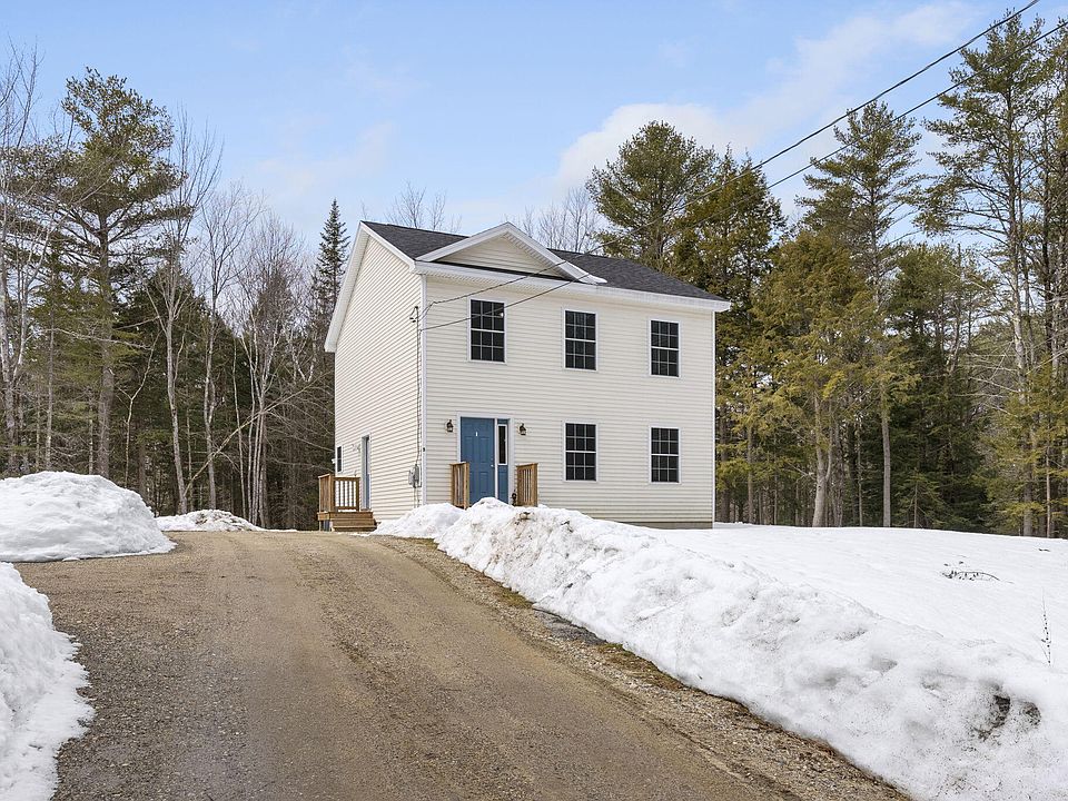 Fresh, new, clean, move-in ready, turn-key! This lovely two story home is virtually brand new at 2 years young and is a stunning example of simplicity, in harmony with function! On the first floor- pleasing contrast between the hardwood flooring and subtle grey walls, on white cabinetry capped with Quartz countertops. Warm natural light fills the space- expertly designed to allow for a cohesive open kitchen, dining, and living space. The kitchen features stainless steel appliances, LP range, full sized pantry and informal seating at the the kitchen island. The living space is comfortable, accented by an attractive electric fireplace set in a nickel gap mantle and topped with blue stone. The Laundry is located in the first floor half bathroom. To the rear of the home is sizable deck- great for enjoying your private, wooded back yard, convenient for grilling/ BBQ and entertaining. The Second Level offers 2 Sizable bedrooms that share a full bathroom, granite countertops on the vanity. The primary bedroom is at the end of the hallway and includes an ensuite full bathroom. The basement is a full foundation, dry and unfinished. Great space for home gym, workshop and storage space, accessible from the exterior via doghouse entrance. This lot is ideal for those seeking space and tranquility. 2 acres surrounded by woodland with treeline on 3 sides, makes for a great privacy buffer, with ample space for outdoor activities! The property lines and setbacks would easily allow for the addition of a Garage. This quiet, idyllic neighborhood off of the Collinsbrook Rd is highly desired for its community, walkability, access to major commuter routes and the amenities of downtown Brunswick, yet with a rural feel!