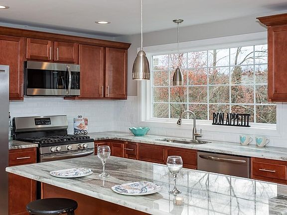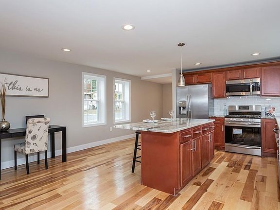 Could it be love at first sight? This completely renovated colonial in beautiful Monson has everything you are looking for! Everything is new from the new heating system to the gorgeous hardwood flooring to the new roof. A grand open concept living room, dining and kitchen will be the envy of your friends and family this holiday season. Imagine hosting the gatherings where everyone is together to share food, laughter and drink! This home has 3-4 bedrooms as the downstairs office could be transformed into a 1st floor bedroom if needed, as there is also a full bath on the first floor. Upstairs you will find a master with private access to the full bath, bedroom 2 and bedroom 3 has a 1/2 bath en suite, perfect for the teenager who needs their own space! You will love the large deck that overlooks the yard...which features a pond formation created by the merging of Chicopee Brook and Conant Brook, and where they meet the dam on Bliss Rd. Might there be some fishing right in the back yard?