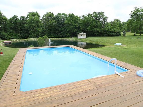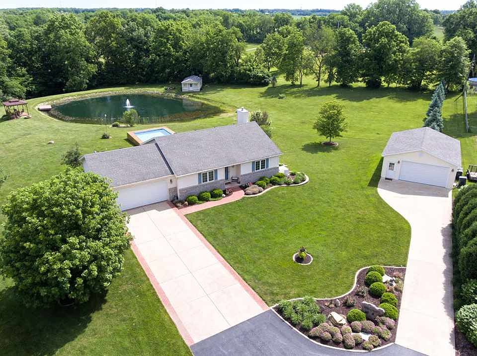RARE FIND! BEAUTIFUL COUNTRY HOME W/ YOUR OWN PRIVATE STOCKED POND & HEATED POOL! SITS ON OVER 2 PEACEFUL WOODED ACRES ON THE OUTSKIRTS OF TOWN!. HUGE DECK & STAMPED CONCRETE PATIO FOR ENTERTAINING. OPEN FLOOR PLAN WITH PRETTY KITCHEN W/ CORIAN COUNTERTOP & BACK SPLASH.HOME IS LOADED W/ UPGRADES INCLUDING: WHOLE HOUSE GENERATOR, TANKLESS WATER HEATER, INVISIBLE FENCE FOR PETS, FINISHED WALK OUT BASEMENT, LANDSCAPING, HEATED POOL & SURROUND DECKING, EXTRA HEATED DETACHED TWO STALL GAR, WELL FOR POND, GAZEBO BY POND, KITCHEN & BATH REMODEL, FLOORING, AND SO MUCH MORE! AWESOME HOME & SETTING!