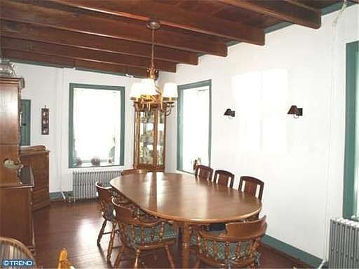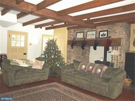 Step back in time to a charming stone farmhouse, circa 1818, with exposed beams, wide windowsills, and wide-plank floors. Panoramic 5 acre plus lot with built-in pool, and spring-fed pond. Spacious LR with walk-in fireplace, hardwoods, and triple window with a view of the pond. Nice size kitchen with plenty of counterspace, ceiling fan and breakfast nook. Light-filled sunroom with radiant floor heat and ceiling fans. Second floor features master bedroom with sitting room,2 additional bedrooms with random width hardwoods and two full updated baths. Third floor walk-up offers the fourth bedroom and fully insulated attic storage.