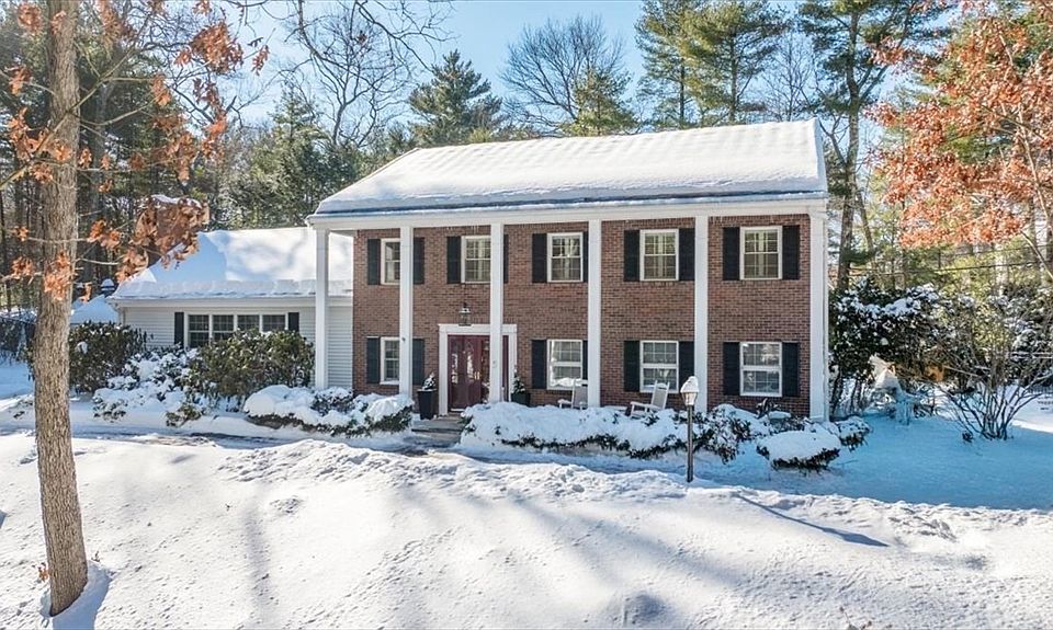 Stately Georgian Colonial in coveted Liberty Pole neighborhood abutting Boston Golf Club; perfectly sited on a corner lot with lush landscaping, circular driveway & garage access. Step into a grand foyer leading to an elegant living room with fireplace and custom built-ins. Custom newer kitchen features high-end appliances, quartz and granite counters, with a center island that flows into the open-concept dining area. Step-down into the family room, mudroom, laundry room, full bath, & sunroom/office & 2 car attached garage. Second floor offers a spacious bedroom suite with walk-in closet, fireplace & bath, plus three additional bedrooms & full bath. The finished walk-out lower level is ideal for a teen space, playroom, or au-pair suite with an additional room and bath. Enjoy a private backyard oasis with a heated saltwater gunite pool and paved patio. This custom home features concrete-reinforced walls and door frames, and is conveniently close to schools, shopping & the highway.