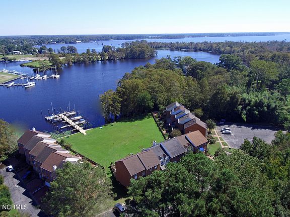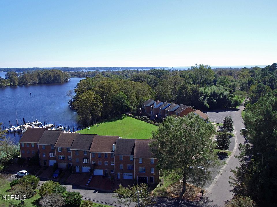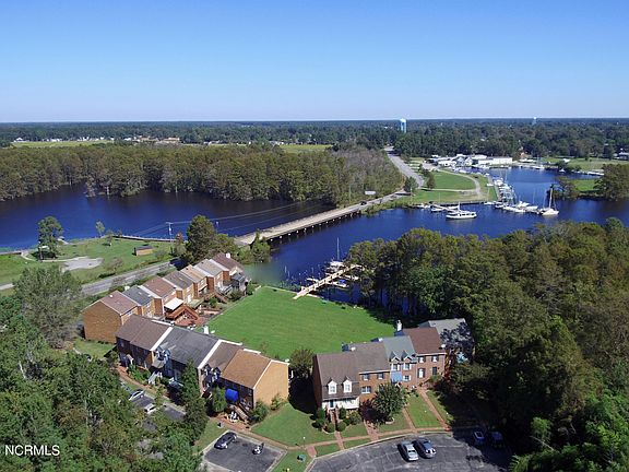 Enjoy this beautiful, well-maintained townhome that sits on the stunning Pembroke Creek and Edenton Marina. Located just 1 mile from Historic Downtown Edenton. Walk, golfcart, or ride your bike to the restaurants, shops, and historic tours just minutes away! Soak up the sunset and water views from the gorgeous brick patio or upstairs deck that is located right off the primary living area. The floor plan is perfect for entertaining - open living room with stunning woodwork throughout, dining room, and kitchen area. A handsome office/flex space with a gas burning fireplace is located just off the main living area. This townhome offers three bedrooms, two full bathrooms, and two half bathrooms. A deeded boat slip conveys with this property. New Roof, new HVAC unit, heated floors, whole house generator, updated kitchen, and more! Call to view, TODAY!
