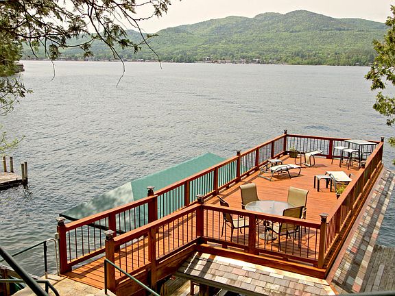 ADIRONDACK MASTERPIECE! Classic old world charm - warm wood accents - completely remodeled to preserve the casually elegant turn of the century magic. Incredible custom kitchen with granite island, high ceiling, & new appliances reproduced to look like antiques. Sumptuous master suite with state of the art bath, inviting lakeside porches and patios sweeping lakeside lawn, lush landscaping & substantial sundeck covered crib dock. A kaleidoscope of supreme sunset, and 60' of lakefront & with mtn views. Whole house generator.