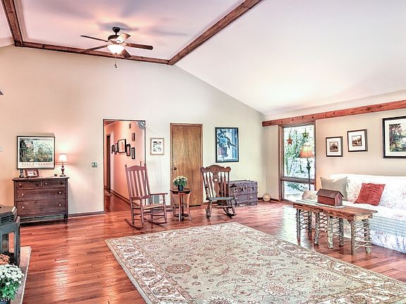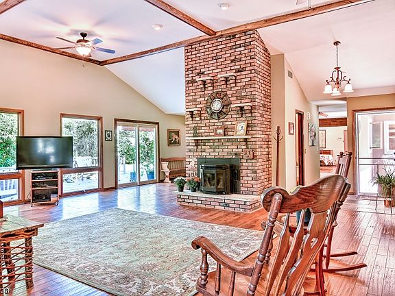 Nestled on 3.89 secluded & serene acres this spacious, comfortable & impeccably maintained 4 bd, 2.1 bath home heralds country living at it's finest! Easy living in the bright open floor plan - Light dances on newer hardwood floors through walls of windows. Enjoy the outdoors on oversized deck overlooking in-ground pool & lovely gardens. Relax while watching horses peacefully graze on adjoining farm. Updated, eat-in cook's kitchen w/ newer SS appls, custom Quartz countertops, SS island hood & range with hardy porcelain floors beneath. Cathedral beamed ceiling adds charm to great room while energy efficient pellet stove adds warmth. Space abounds in 4 good sized bdrms, numerous closets, lrg bsmt & detached 2-car garage w/ loft. Most major mechanicals new or newer. Ample shopping close by.