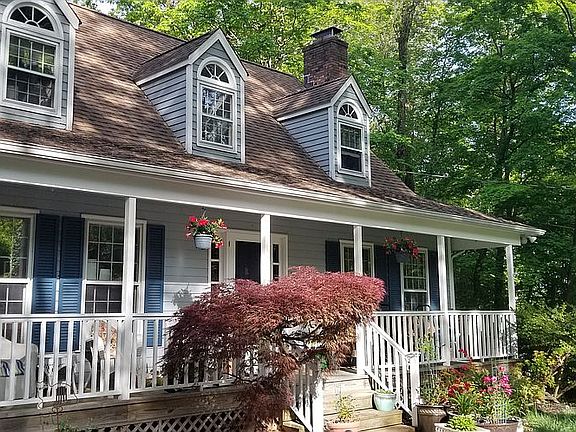 WELCOME HOME to your 2-story 3-car garage Farmhouse Cape home in desirable Lower Weston. This eager-to-entertain home has it ALL on 2+ wooded acres: level-lawn, babbling brook, stone walls, country cross-breezes in each room, welcoming front porch, screened-in back porch. Convenience to Merritt Pkwy (2 ml), Westport train (6 mi, ~ 1hr train to NYC), nearby beach, golf, shopping, eateries. Thru covered porch, front door opens to 2-story foyer w hardwood floors throughout Main Floor. Warm Living Room w wood-burning fireplace, French doors leading to stunning, tree-lined, screened Back Porch w vaulted ceiling. Partially updated country Kitchen w soaring ceiling/skylight, spacious dining area (hosting up to 25 seated or use as cozy Family Room) w fireplace, granite & butcher-block counters, double ovens, 5 burner electric cook-top, BOSCH dishwasher, 2 pantries, closet laundry area & access to Back Porch thru additional French doors. 1st Floor also includes ensuite Master Bedroom (or Office) with over-sized jacuzzi tub, double sinks, walk-in shower. 2nd Floor 2 sizable Bedrooms w 2 closets each & 1 w additional walk-in closet (or storage area), full-size Bathroom. Backyard new stone patio (perfect for fire pit). Area for garden or pool. Additional Side Lawn. Other Upgrades: Ductless AC, roof, well-water pump & filtration system, furnace, basement Rec Room with pool table. House Expansion possibilities. 1 of CT's Best Public School Systems. 1 hour drive to midtown NYC.