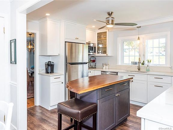 Beautifully updated 3 bedroom 1.5 bath Cape on a quiet street. Excellent location just minutes to I-84, Danbury Hospital, shopping and restaurants. You will instantly fall in love with the new kitchen with quartz countertop, center island, and eat-in area. A bright sunroom overlooks the backyard with and above ground pool, patio and garden area. The living room offers hardwood floors and wood burning fireplace. Upstairs you will find 3 bedrooms and a full bath with hardwood floors throughout. The basement is great for storage or finishing for extra living space, there you will find the laundry room, half bath, and walkout to the backyard. Other highlights include beautiful flower gardens, garden shed and 1-car garage. HIGHEST AND BEST OFFERS DUE SUNDAY 5/22 at 7PM