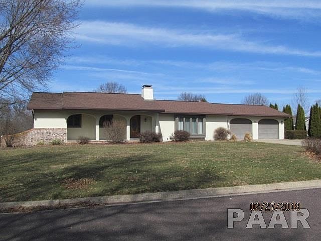Delightful step saver ranch in Country Club Estates. Spacious liiving rm w/ wood burning fireplace, formal dining rm w/hardwood flooring, fully applianced eat-in kitchen & separate MF laundry area. Fireplaced (gas log) family rm with slider to patio area. Master bedrm with full bath, two additional nice sized bedrooms & another full bath. Lots of closet space throughout. Windows replaced in 2009, furnace 2005, exterior painted April 2010, roof (tear off) in 1998. 24x24 2 stall garage with shelving for storage. Appliances remain but not warranted. Fireplace in living rm has not been used