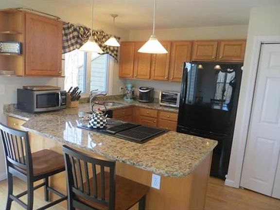 hello hello hello Welcome to 5 Onamog, Marlborough. Enter this home with gleaming hardwood floors thru out the entire first floor. Sunny large living room with beautiful NEW picture window. Updated half bath, with pedestal sink. Enter the eatin granite covered kitchen, large over hanging granite for stools, pantry closet, Sliders head out to newly painted Balcony. Move up the OAK stair case, with cathedral ceiling, to 2 oversized bedrooms. Both bedroom have renovated FULL bathroom, XL closet with full organizer systems, and ceiling fans. Additional family room in finished walk out basement with private patio. Current owners have done, NEW Windows 2012, NEW Vanity, New toilets, New bathroom flooring, NEW Refrigerator 2011, NEW Washer and dryer 2011, Insulated the attic in 2012, all air systems professionally cleaned, Bathroom vent redone in attic, decks painted 4/14, installed ADT system, Closet organizing systems 2012, professional painted interior. Condo fee includes water sewer