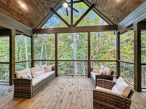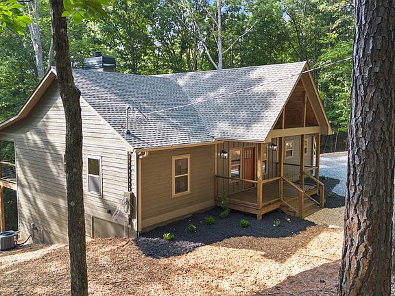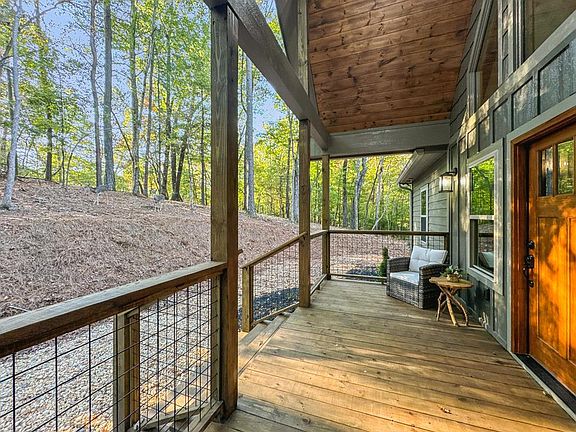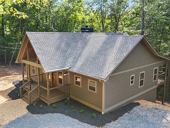NEW CONSTRUCTION - Elegance abounds in this one level over unfinished basement home, with easy driveway off paved roads in Coosawattee River Resort, Ellijay. The welcoming beamed great room flows onto the massive covered porch with trees surrounding your private view. Note the stonework on the wood-burning fireplace, just the thing for chilly fall nights. Enjoy hickory wood floors all throughout the house (tiled bathrooms). A Primary suite to one side separated by the main living space, has its own porch access, beamed ceiling, a lovely walk-in closet and elegant bathroom with plenty of storage. The two bedrooms on the other side of the great room share a bathroom, with one of the bedrooms also having access to the porch. Lovely gourmet kitchen to cook meals to gather around the table with friends. You'll love the large laundry room with additional space for extra items right off the kitchen. Downstairs is stubbed for two oversized rooms, a bedroom and bathroom just awaiting your creative ideas. There is also a utility room for additional storage if needed. The home is sided with hardy-board which is both beautiful and low-maintenance. Built by a premier local builder, you do not want to miss seeing it in person while you still can! Enjoy amenities such as 3 pools, 5 riverfront parks, pickleball, tennis, basketball, 18 holes of mini golf and many organized events and activities. Live your best life in Gilmer county- 65+ primary residents pay MUCH lower taxes. *Ask about outdoor fireplace option! Unfinished basement is stubbed for bathroom. and framed for a great entertainment room, workshop, bunk room and more!