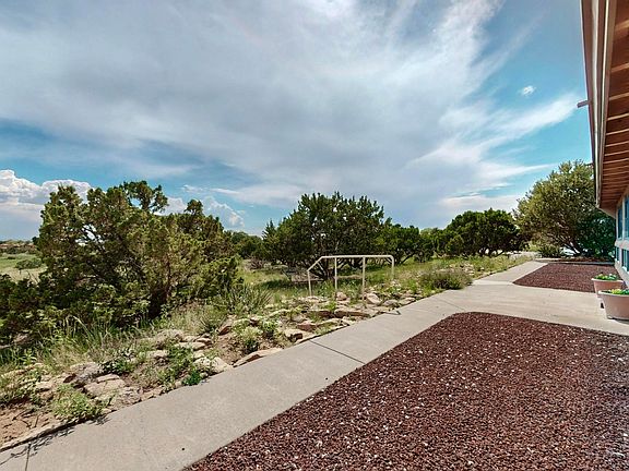 First time on the market, grand one owner home custom built by Sierra Homes bordering a large greenbelt, on a cul de sac close to the Eldorado community center and amenities. The passive solar open great room combines kitchen, dining and living room with Kiva fireplace and a mini split. Separate guest bedroom with bathroom off the living room, plus another guest bedroom and full bath, plus an office/library with walk in closet/storage room with extra access from the garage.. A spacious owners suite with large bathroom and mini split for comfortable living. There is an oversized 600sf finished 2 car garage with plenty of storage space and plenty of guest parking. All this close to Eldorado amenities, local shopping, schools, parks, trails, library and senior center, and only minutes into Santa Fe